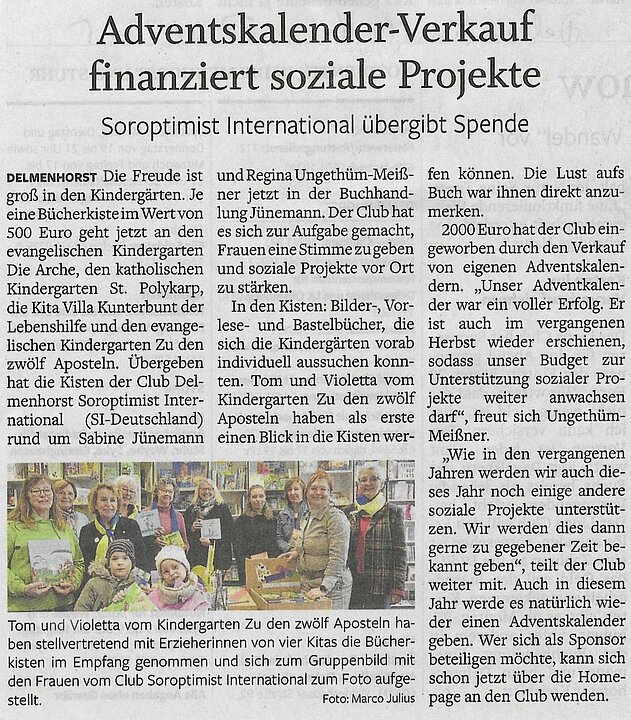 Möglich ist uns dies durch unseren jährlichen Adventskalender-Verkauf, dessen Erlös sozialen Projekten zu Gute kommt.