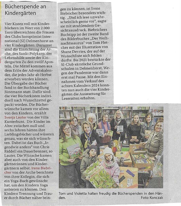 Am 23.01.2025 haben wir an vier Kindergärten Bücherkisten im Wert von insgesamt 2.000 Euro übergeben. So konnten wir unsere langjährige "Tradition" fortsetzen, Grundschulen und Kindergärten in ihrem Bildungsauftrag zu unterstützen und die Leselust der Kinder zu fördern.